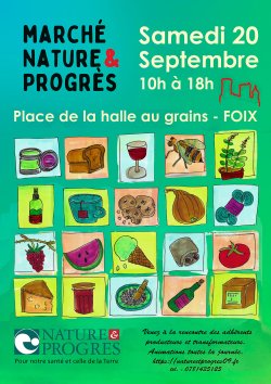 Samedi 20 septembre 2025 à Foix (Ariège), Marché Nature & progrès. De 10h à 18h, marché des professionnel.le.s d’Occitanie sous mention Nature & Progrès, place de la Halle aux grains.